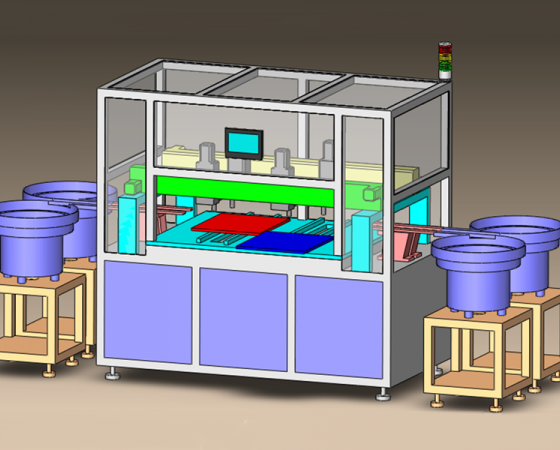 介绍:此设备为自动摆盘设备,可自动对产品分料进行定位摆放,高速高效完成;所有数据都可以在人机界面中清楚的显示。