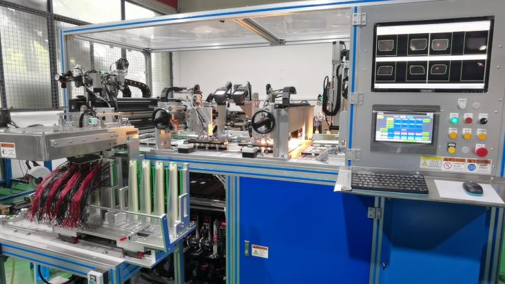 主要组成:设备主要包含热电芯片批量连续不间断上料装置、柔性双头机械手理线装置、循环精准定位装置、热成像芯片信息采集装置、AOI人工智能深度分析系统、智助分选装置组成。